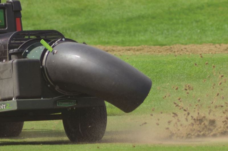Воздуходувка выдувает аэрационные стержни так же легко, как и обрезки травы, и листья.