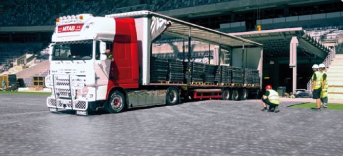 Покрытие Armor Deck может использоваться как подьездная дорога для тяжёлой техники во время сооружения сцены или монтажа оборудования на поле. Покрытие имеет специальные отверстия для вентиляции газона.